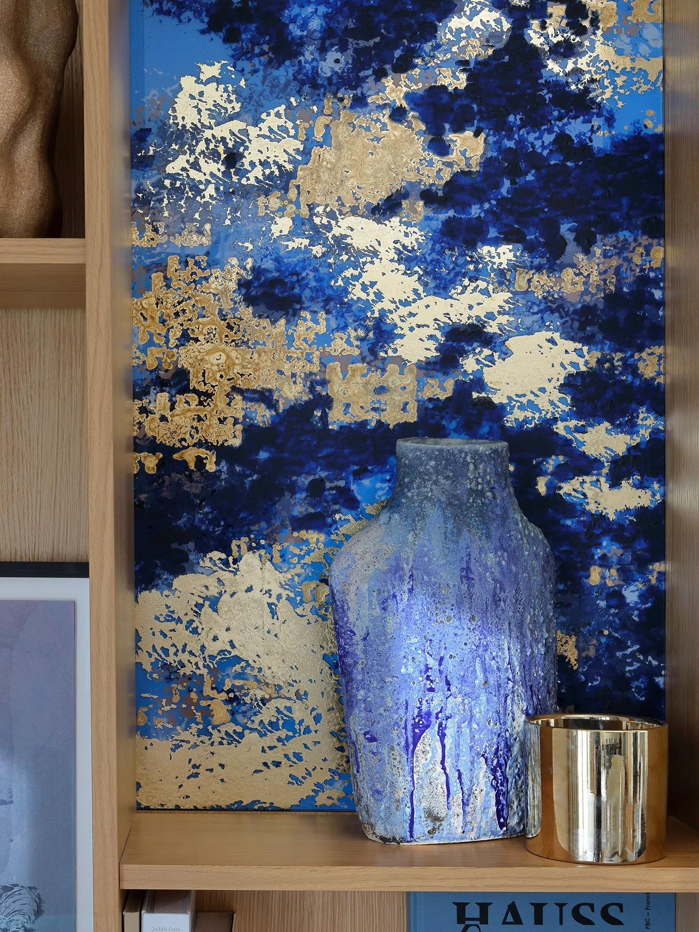 This ancient technique, which involves applying paints, inks or metallic foils to the back of glass, produces incomparable effects of brilliance and depth. Now reinterpreted by artists such as Solène Eloy, it gives rise to luminous mineral decorations. Eglomerated glass lends itself to a multitude of uses, from joinery cladding and precious wall coverings to exceptional furniture fronts and unique glass roofs and trays. Each creation is a rare piece, combining the transparency of glass with the richness of materials.